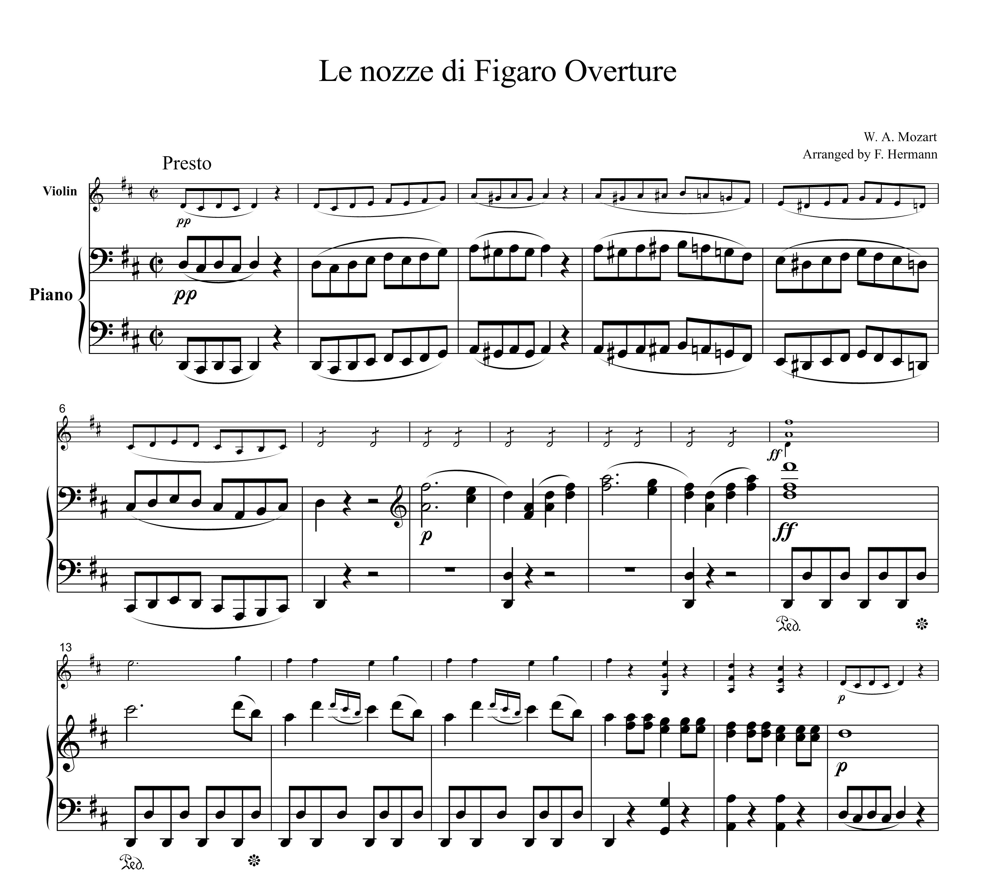 Mozart Le nozze di Figaro Overture, for violin & piano, VM003