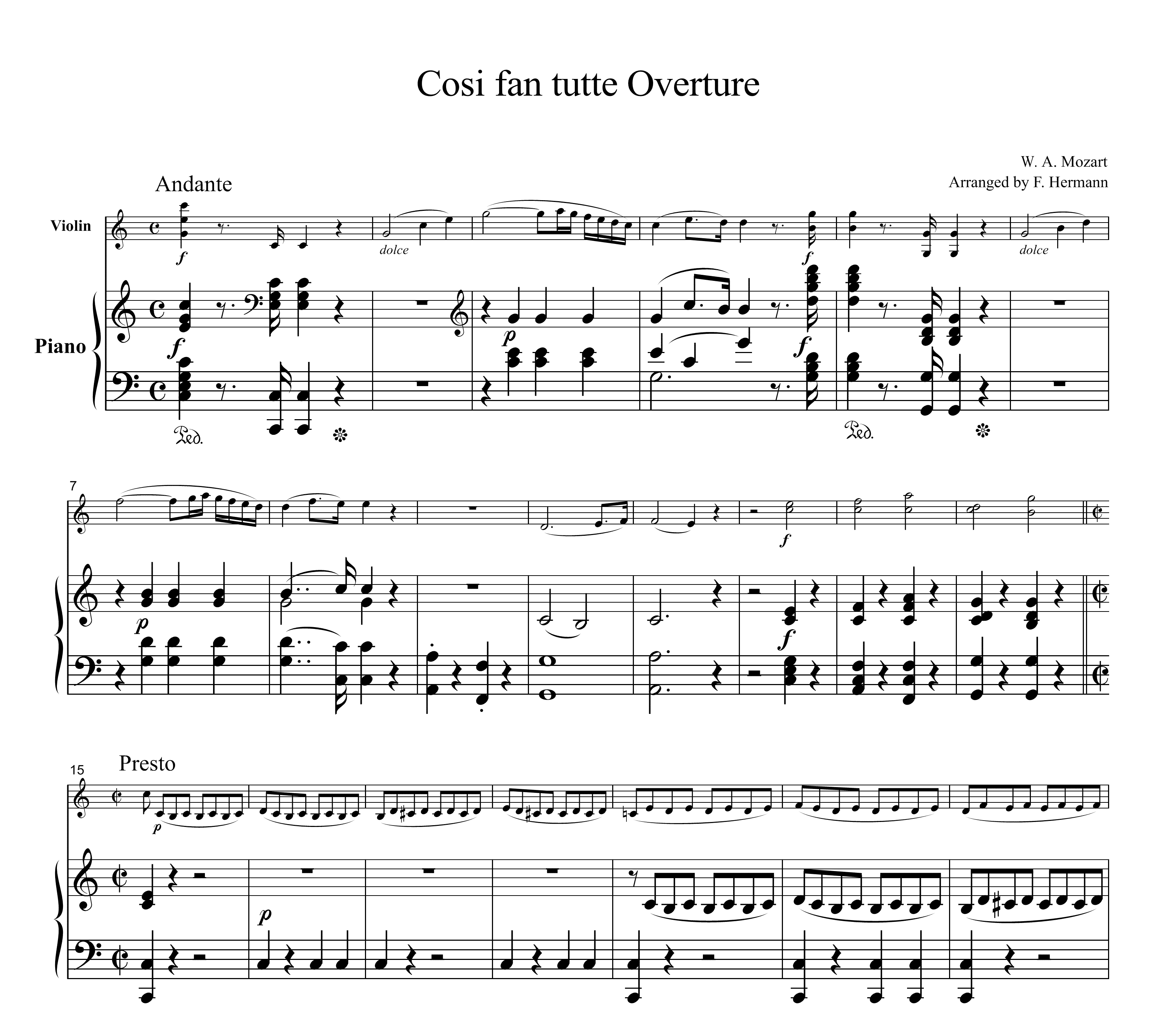 Mozart Cosi fan tutte Overture, for Violin & Piano, VM005