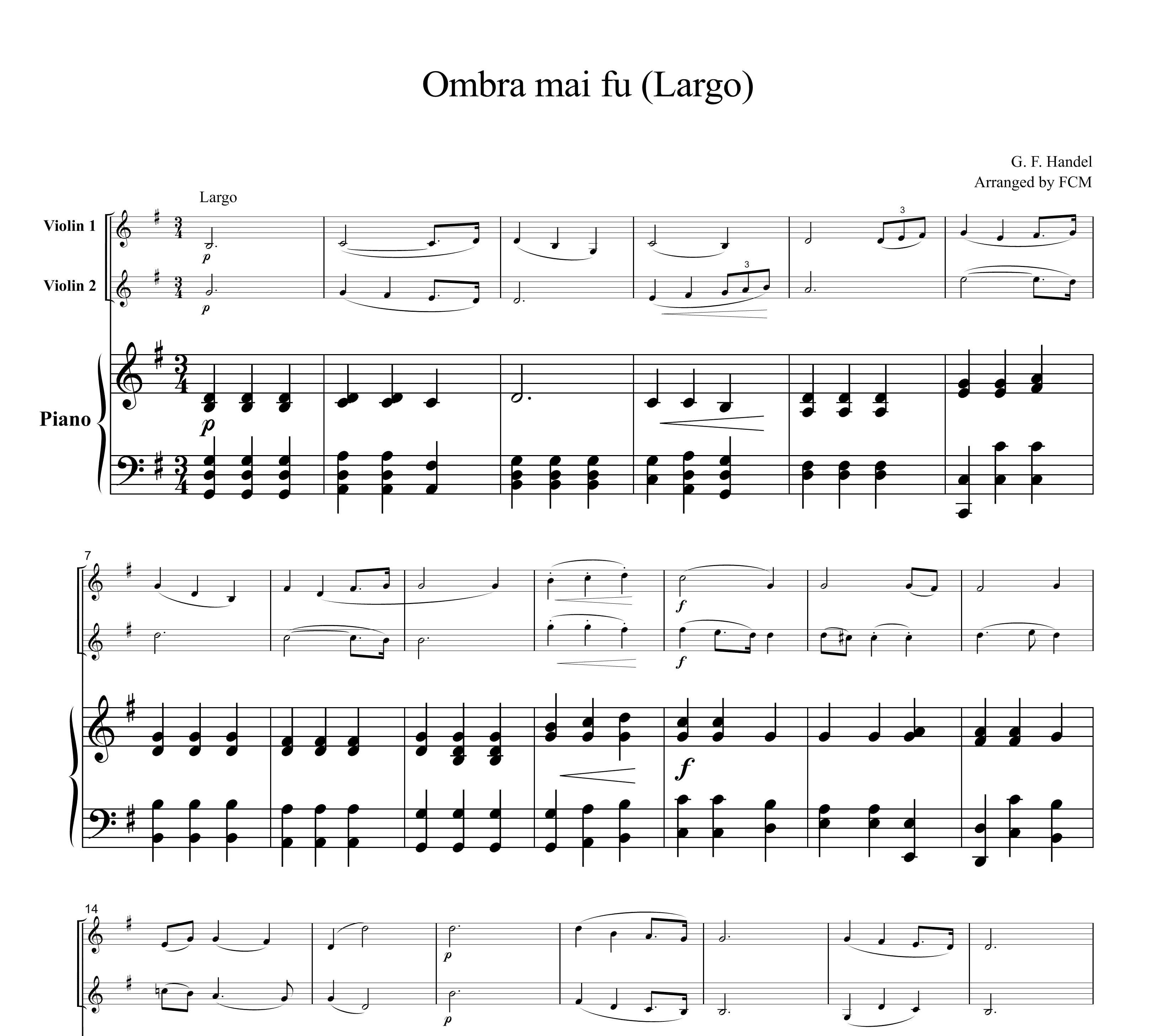 Handel Ombra mai fu (Largo), for 2 violins & piano, VN205